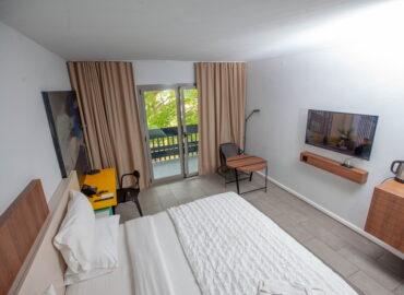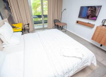 Elle comprend un lit king size, une salle de bain moderne, un placard, un grand mirroir, un mini refrigérateur, un coffre fort pour mettre en sécurité vos objets de valeurs.